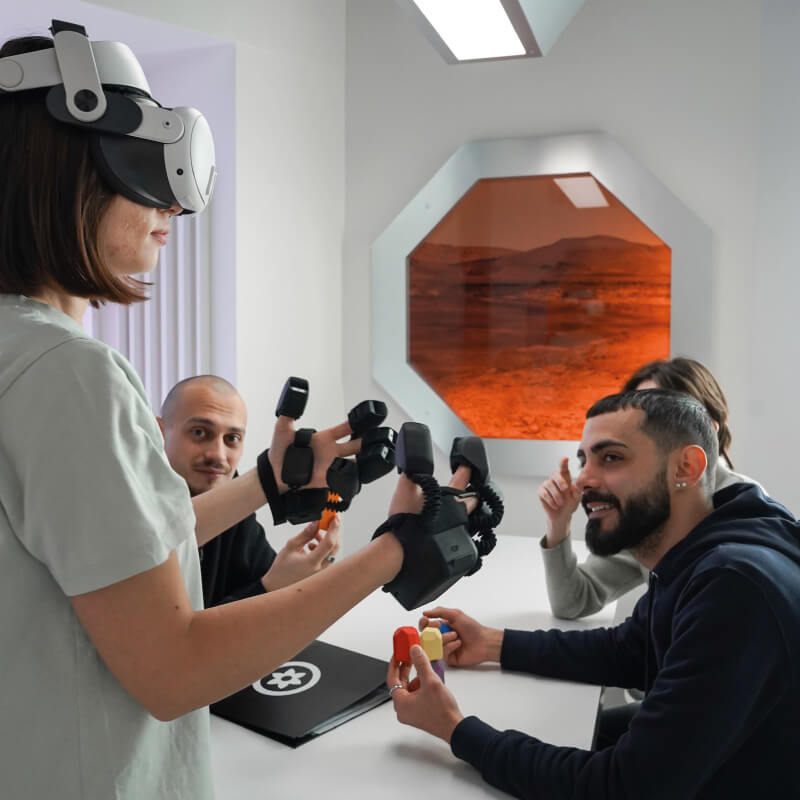 VR simulations in education bring students to historical events, cultural landmarks, and microscopic worlds, providing interactivity and realism that textbooks alone cannot achieve. With VR headset and haptic gloves like TouchDIVER, students can engage with virtual objects and experience full haptic feedback, developing a deeper understanding of the subject matter. This immersive learning experience matched with haptics fosters hands-on exploration, experimentation, and knowledge retention.